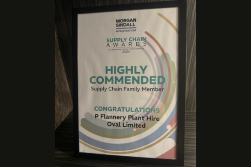 "Highly Commended in the category of Supply Chain Family Member for 2024. P Flannery Plant Hire have proven time and time again why they are an integral part of our supply chain family. They consistently deliver and provide exceptional service. Their focus on reliability and a right-first-time approach ensures our project needs are continually met. Congratulations on achieving our highly commended recognition for 2024, well deserved."
