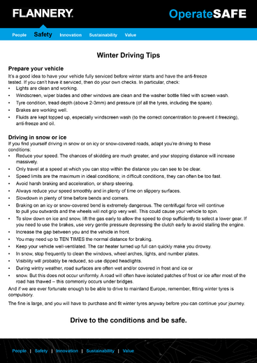 One of our OperateSAFE rules is focused on driving safely and appropriately for the road (and site) conditions. As the weather is looking increasingly cold and wet, we thought it might be useful to remind everyone of these really useful winter driving tips.